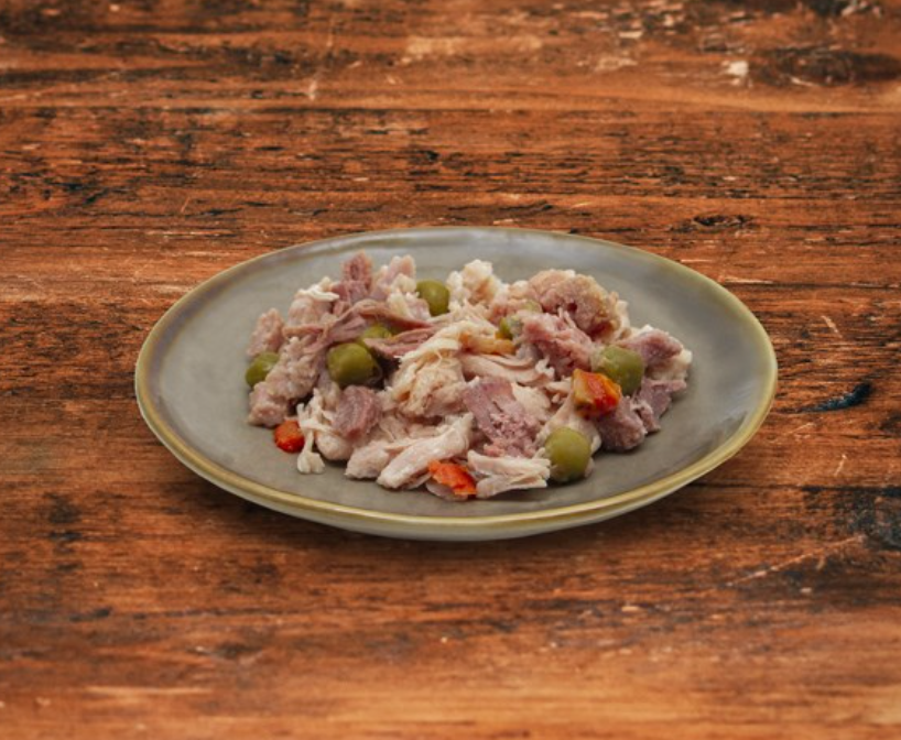 Prémiové jídlo pro psy vyrobené z lahodných kousků krůty z volného výběhu, šetrně uvařené s norským lososem s certifikací ASC a trochou vývaru.